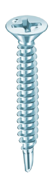 These are special type of steel screws that can drill its own hole with the added feature of a drill point. The drill point looks lot like the point of a drill-bit. It will drill a hole and form the mating threads in one operation. It is used with the help of power tools.